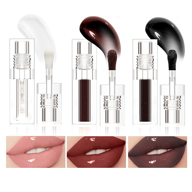Makeup processing | 3 colors (black, transparent, blackberry) lip plumping waterproof and long-lasting moisturizing water-light mirror lip glaze customized processing, containing moisturizing ingredients to nourish and care for your lips, keep the lips moist and pouty, dynamic and beautiful.
